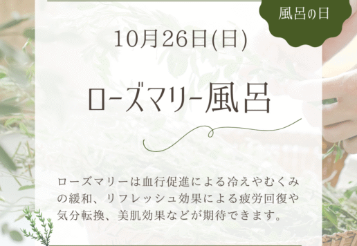 ※10/16(木)と10/30(木)は16:00~21:00の間、温浴施設および交流スペースのみ営業します(食堂などは休み)
